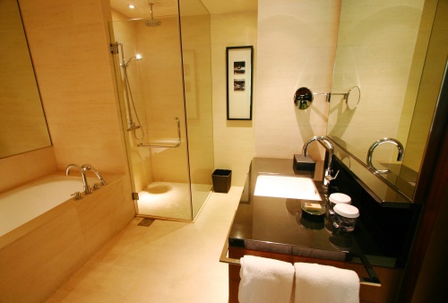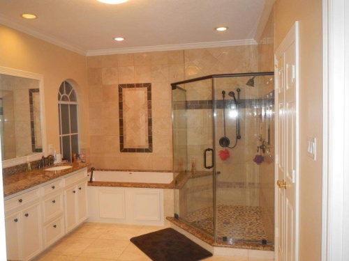 Our top-tier bathroom etends the concept of a full-bathroom. It includes tiling on the walls around a shower or bathtub and allows for a combination or stand alone shower and tub.